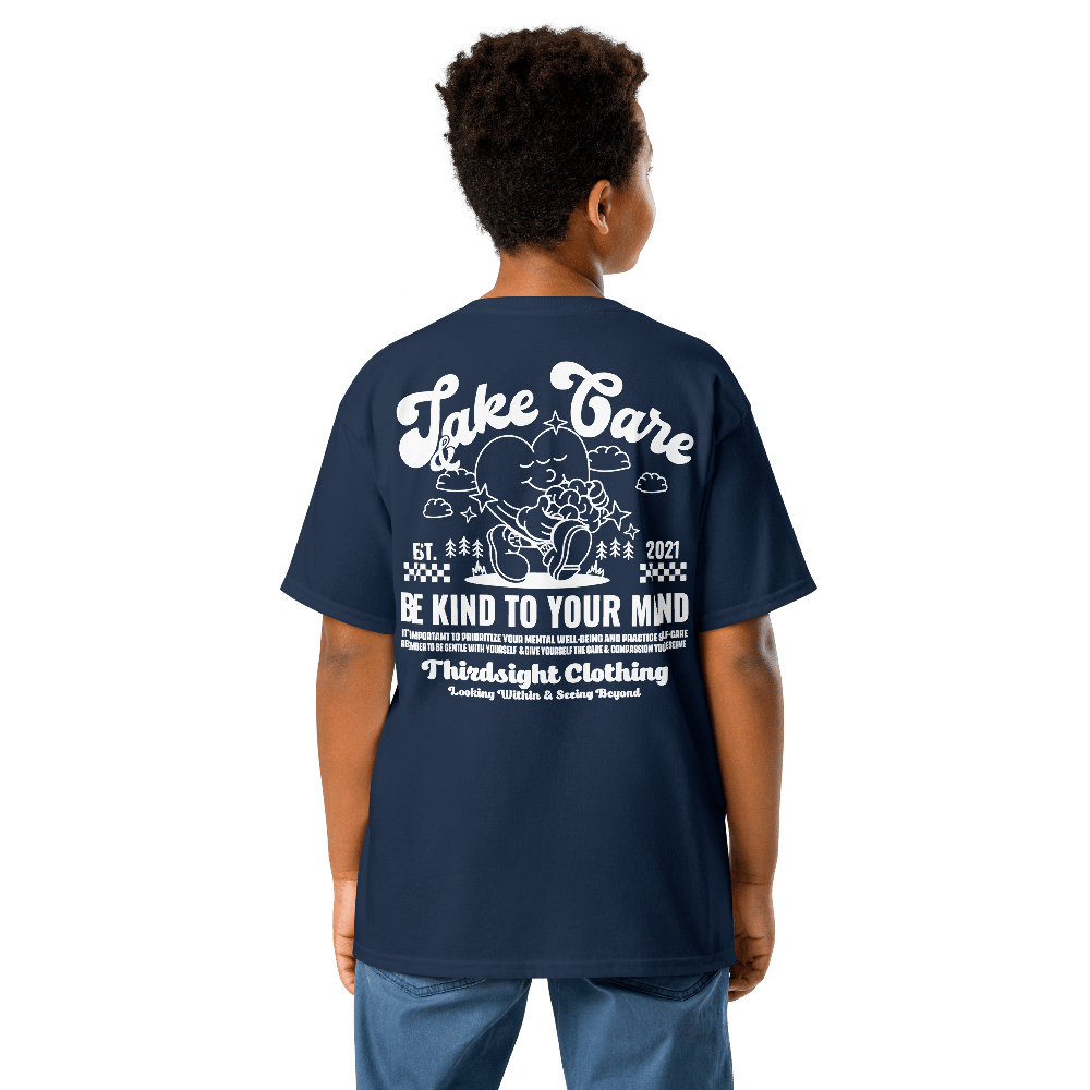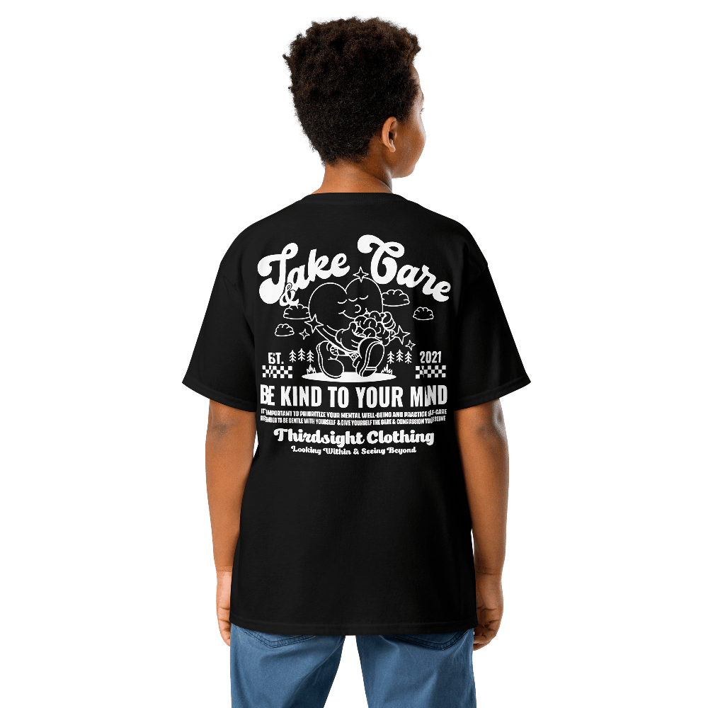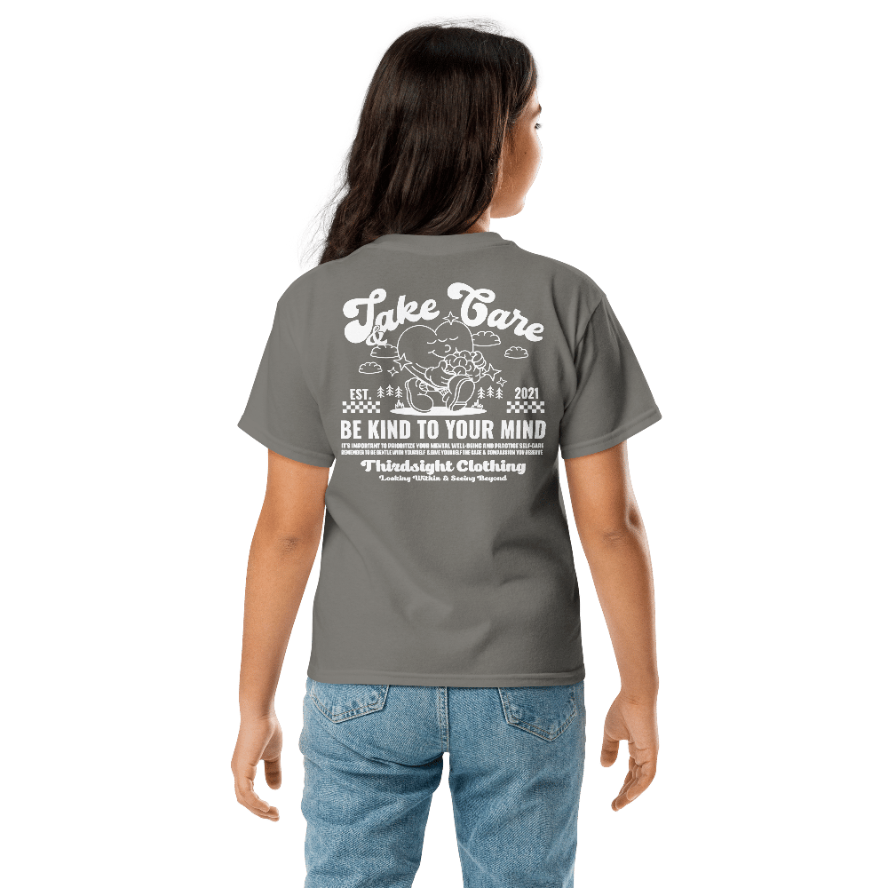 Take Care White Print Kids Tee